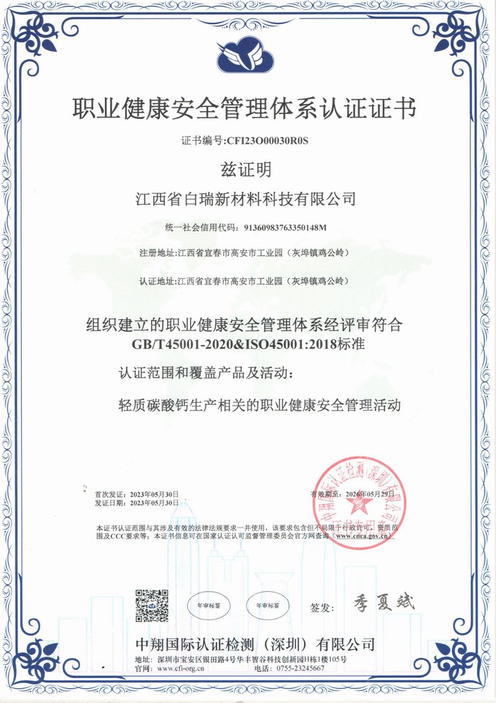 新材料職業(yè)健康安全管理體系認(rèn)證證書