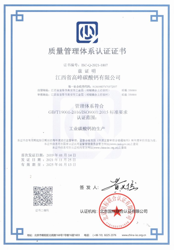 江西省高峰碳酸鈣有限公司、江西省白瑞新材料科技有限公司
