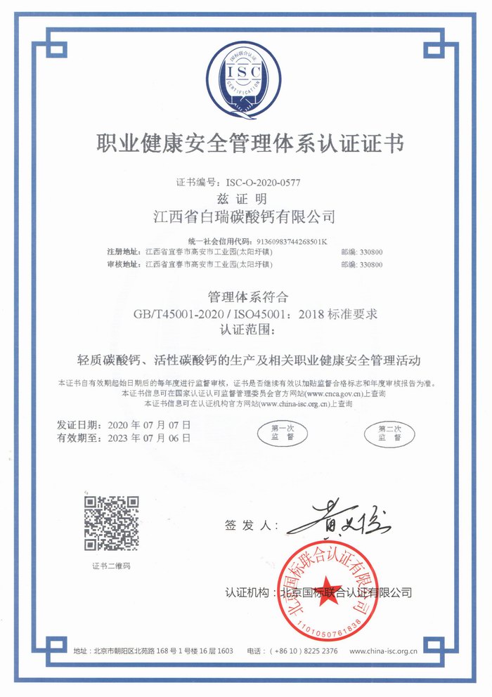 ISO45001職業(yè)健康安全管理體系認(rèn)證證書(白瑞)